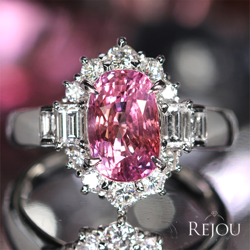 大粒!希少な高品質ピンクダイヤモンド(FIPP)VVS2がセンターに君臨! 取り巻くローズカットダイヤモンドの希少光彩にもご注目ください。 最高のピンク美彩を放つカリスマ・ハイジュエリーの誕生です。