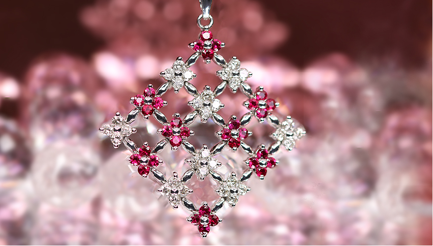 厳選したルビーとダイヤモンドを配した、ゴージャスなジュエル。