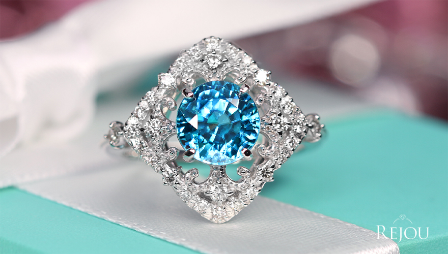 天然ブルージルコンの力強い輝きの魅力とダイヤモンドの光の連鎖が