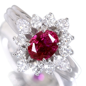 ルビー 0.85ct ダイヤモンド 1.25ct プラチナ リング(指輪)【品質保証書/宝石鑑別書】
