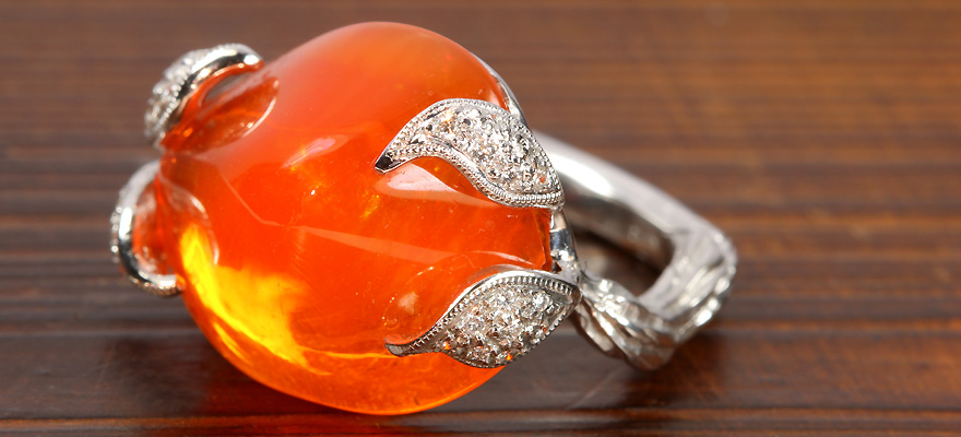 メキシコオパールの自由な形に合わせて仕立てられたハンドメイドジュエル。