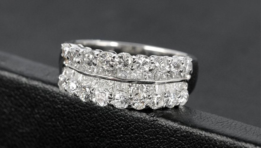 煌きの音色を奏でそうな極上ダイヤモンドづくしのリングです。