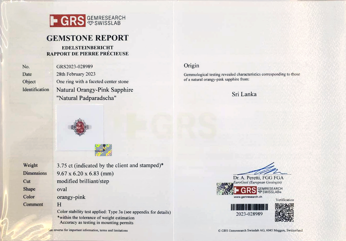 ![]() <第460回抽選販売>スリランカ産パパラチアサファイア 3.7ct ダイヤモンド 約1ct プラチナ リング(指輪)【品質保証書/GRS宝石鑑別書】【応募期間:11/4まで/レビュー必須/当選人数1名様】![]() 商品番号 BA251007-6S2130601182