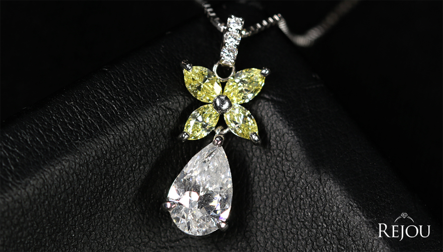 イエローダイヤモンドとの対比も感じられるホワイト(カラーレス)ブリリアンシーも強烈に
