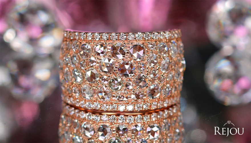 ![]() 豪華虹色ダイヤのローズカット&ラウンドブリリアントカットのダイヤモンドの 圧感のボリュームのパヴェリングの輝き! 煌きで埋め尽くされたラグジュアリーなピンクゴールドリング。 ●ダイヤモンドについて ローズカット&ブリリアントカット… 芸術的に美しいカットの超希少ハーモニーを奏でるダイヤモンドたちを 贅沢にセレクト・セッティングいたしました。 所見VSクラスに近い透明感を持ち、強いブリリアンスと虹色ファイアが煌めきます。 ローズカットはオーロラの揺らぎの虹のような、ダイヤモンドの透明度も強調した 美しいダイヤモンドだけが許される中世ヨーロッパの古典カッティング。 その美しさは現代になってもなおこのローズカットの美しさは多くの人の心を魅了しますが 本当に美しいローズカットダイヤンドは希少なので出会いも困難です。 このたびは、貴重な貴重なローズカットダイヤモンドを一挙に厳選いたしました。 しっとりうるうると優美な輝きと虹を放つ希少ローズカットダイヤモンドの極上調和の奇跡をご実感いただけますように…* また、ラウンドブリリアントカットはご存知のとおり 屈折や反射でスピード感のある煌めきが放たれるダイヤモンドならではのカッティングですが 様々なフォルムのローズカットダイヤモンドたちとの饗宴で 美しく芸術的なジュエリーとしての煌めきと輝きを心ゆくまでご堪能して頂けるような 希少セレクトダイヤモンドたちばかりです。 ●デザインについて ふっくらとしたピンクゴールド製アームに大小のローズカットダイヤモンドをパヴェセッティング。 さらには外側ラインにラウンドブリリアントカットの光の連鎖も走る圧巻のデザインです。 ダイヤモンドがどのように留められているのか確認できないほどの手間のかかった見事なセッティングで 所見VSクラスの透明感とブリリアンシーとディスパージョン・ファイア(虹)が放出されていくかのようです。 様々なスピード感で煌めくような時間差の輝きのリズムも感じられるように… 芸術的に美しいカットの超希少ハーモニーを奏でるダイヤモンドたちを 贅沢にデザイン・ダイヤモンドセレクト・セッティングいたしました。 ●REJOUオススメポイント なかなか目にすることができない豪華で希少な輝きの調和は 見た人が思わず二度見してしまうような素敵なジュエリーです。 貴重な光彩をハイクオリティで揃えた、ジュエリー愛好家にとって夢のようなジュエル。 贅沢な遊び心にもあふれた極上ジュエリーです。 これほどまでに豪華でレアなお品を、 市場では出逢えないような価格でお披露目させていただきます。 豪華虹色ダイヤのローズカット&ラウンドブリリアントカットのダイヤモンドの 圧感のボリュームのパヴェリングの輝きに誰もが感動。 煌きで埋め尽くされたラグジュアリーなピンクゴールドリングです。 (大人可愛く上品で優美な美しさ。ドキドキしてしまうほどです。 長い間、愛でられる魅力のジュエルです。) ●アイテムスペック 材質…K18ピンクゴールド 重量…約10.6g リングサイズ…12.5番(±3番以内サイズ変更可) 最大幅…約13.8mm 厚み…約3.8mm 中石…ローズカットダイヤモンド トータル 1.88ct 脇石…ダイヤモンド トータル 0.40ct 商品状態・・・新品 ●宝石ランク 彩 … S A B C D 透明感 … F VVS VS SI I I2 カット… EX VeryGood Good Fair Poor