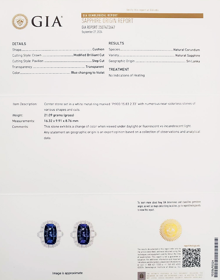![]() <第462回抽選販売>スリランカ産非加熱カラーチェンジブルーサファイア(Blue Changing to Violet) 約16ct ダイヤモンド 2.3ct プラチナ リング(指輪)【品質保証書/GIA宝石鑑別書】【応募期間:12/2まで/レビュー必須/当選人数1名様】商品番号 BA251114-10S5810711546