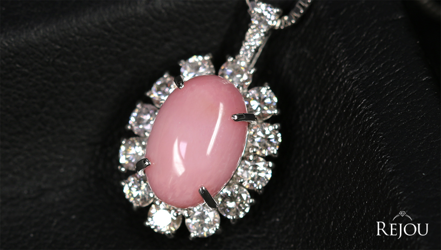 ![]() 奇跡の4.43カラット大粒コンクパール! 最高品質の「王道桜ピンク」と「火炎模様」で 代々受け継いでいくにふさわしい家宝級のジュエリーです。 ●コンクパールについて 4.43カラットという圧倒的な存在感!奇跡の大粒コンクパールとの出逢いです。 コンクパールには様々な色調がありますが こちらは濃すぎず薄すぎない、肌に最も美しく映える 「王道桜ピンク」の表面のポーセリン・ラスターの下から コンクパールの最上級の付加価値である「火炎模様」もしっかりと確認できます。 最高品質の証と言える素晴らしい天然コンクパールで、しかも圧巻の4カラット超えは、驚きの凄さです。 まさに奇跡の出会い!超希少なお宝級です。 ●デザインについて デザインとセッティング:格式高い「取り巻き(ヘイロー)スタイル」 この稀有な宝石を支えるのは、伝統的かつ王道のデザインです。 バチカン(チェーンを通す部分)にもダイヤモンドをあしらうことで、胸元全体に縦のラインの輝きをプラスしています。 ダイヤモンドのブリリアンスとファイアも特に豊かで メインストーンを取り囲むダイヤモンドは、一粒一粒が主張するほどのサイズ感があり、 高品質なラウンド・ブリリアント・カットが施されています。 コンクパールの「とろりとした艶(ラスター)」に対し、 ダイヤモンドの鋭い「金剛光沢(アダマンタン・ラスター)」と虹色の輝き(ディスパージョン)が対比も美しく 互いの美しさを引き立てる可憐さとラグジュアリーさも抜群のお仕立てです。 ●REJOUオススメポイント お宝級ミュージアムクラスの豪華4カラットを超える圧倒的なボリュームの 奇跡的なコンクパールが王道桜ピンクカラーで火炎模様とともに輝く希少ジュエリー! ダイヤモンドの豪華なクラスターセッティング(取り巻き)により 大人の女性にふさわしいハイジュエリーとしての品格を纏っています。 「王道桜ピンク」の愛らしさと、力強い「火炎模様」の神秘性と 自然が生み出した奇跡のアートピースとして 代々受け継いでいくにふさわしい家宝級の超大粒・天然コンクパールジュエリーです。 ●アイテムスペック 材質(トップ/チェーン)…Pt950/Pt850 重さ…約6.8g チェーン長…約45cm(スライドアジャスター付き) チェーン太さ…約0.9mm 寸法・厚み(バチカン含む)…約20.4×12.2×9.3mm チェーン取り外し…可 中石…コンクパール 4.43ct(約11.0×7.5mm) 脇石…ダイヤモンド トータル 0.92ct 商品状態・・・新品 ●宝石ランク 彩 … S A B C D 艶 … S A B C D 形 … S A B C D 火炎模様 … S A B C D 脇石… S A B C D E