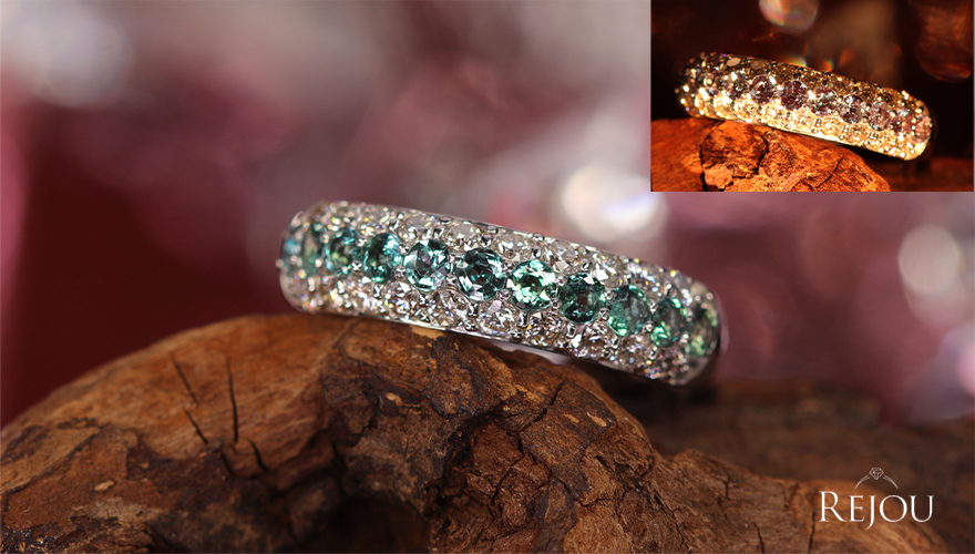 ![]() 高品質アレキサンドライトがずらりと並ぶ豪華なリング。 リジューならでは!1石1石がメインストーンクオリティ! コストパフォーマンスの凄さもご実感いただけるREJOUイチオシの希少ジュエリーです。 ●メインストーンについて 希少な高品質アレキサンドライトの同品質を11石揃える難易度もクリア! 11石ともにリングの主石クオリティで、豪華知的なのに、あっという間に妖艶。 クールビューティーなピーコックグリーンから色香たっぷりのワインレッドに カラーチェンジする神秘的なアレキサンドライトを厳選いたしました。 全石カットバランスも素晴らしく透明感も高いだけあって 発色の美しさもカラーチェンジの美しさも際立っています。 これだけ美しくグレードの高いアレキサンドライトを揃えましたので 鮮やかな彩を遠目でもご確認していただけますし心躍る美しさです。 ●サイドストーンについて 所見VSクラスの極上ダイヤモンドのみを厳選しております。 1石1石、強力なファイアーとブリリアンシーを放ち 全石、完璧な透明感とカット・テリの美しさで 極上のアレキサンドリングとしての調和とともに大きな輝きで煌き続けます。 ●デザインについて ふっくらとしたパヴェセッティングの中央列に高品質アレキサンドライトがずらりと並ぶ豪華なリング。 アレキサンドライトとダイヤモンドを贅沢にセッティングしたハーフエタニティリング。 ラウンドブリリアンカットのアレキサンドライトの光彩ラインの上下に ラウンドブリリアントカットのダイヤモンドも添うように美しくセッティングいたしました。 11石のアレキサンドライトは1石だけでもリングになる主役石ばかり。 美しいフォルムが指に馴染みやすくフィット感がありますので、着け心地も抜群です。 時間や光源とともにアレキサンドライト11石が一列の大きな面積で妖艶にカラーチェンジしながら 上下のダイヤモンドラインとともにそれぞれをさらに際立たせ合う美しさも圧巻です。 ボリューミーすぎず、適度なボリューム感も上品豪華で素晴らしいお仕立てです。 ●REJOUオススメポイント ふっくらパヴェセッティングの中央列が高品質アレキサンドライトがずらりと並ぶ豪華なリング。 リジューならでは!1石1石がメインストーンクオリティ! コストパフォーマンスの凄さもご実感いただけるREJOUイチオシの希少ジュエリーです。 時間や光源とともにアレキサンドライト11石が妖艶にカラーチェンジする美しさも圧巻! 高騰一途のアレキサンドライトがこの面積でライン上に輝きカラーチェンジできる素晴らしさに 誰もが驚き感動してしまう逸品リングです。 (コストパフォーマンスの凄さも、必ずご実感いただけます。) ●アイテムスペック 材質…Pt900 重量…約4.3g リングサイズ…13番(±3番以内サイズ変更可) 最大幅…約5.0mm 厚み…約3.0mm 中石…アレキサンドライト トータル 0.58ct 脇石…ダイヤモンド トータル 0.60ct 商品状態・・・新品 ●宝石ランク 彩 … S A B C D 透明感 … F VVS VS SI I I2 カット… EX VeryGood Good Fair Poor カラーチェンジ … S A B C D 脇石… S A B C D E