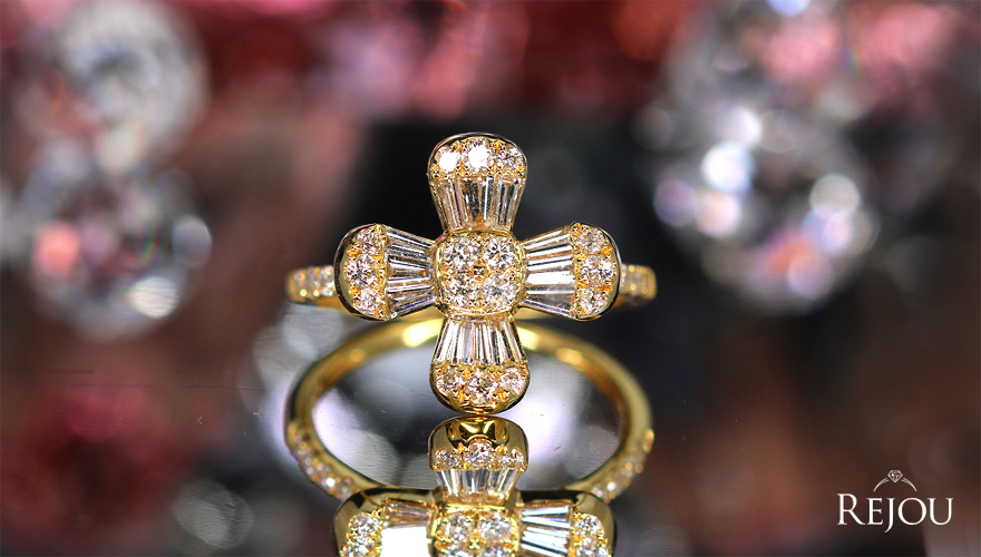 ![]() ゴールドの聖なる十字に宿るトータル1カラットのダイヤモンドリング! 様々なカットのダイヤモンドがシンフォニーを奏で合うかのような煌めきを増幅 花びらが広がるような可憐さと気品を併せ持った素晴らしい意匠のゴールドリング ●ダイヤモンドについて テーパーバゲットカットとラウンドカットの贅沢な競演です。 全てが所見VSクラスの厳選ダイヤモンドであり、濁りのない透明感が際立ちます。 バゲット特有の澄んだ「シンチレーション」と、ラウンドが放つ虹色の「ファイア」、 そして全体から溢れ出す力強い「ブリリアンシー」が、完璧な均衡で共鳴。 高品質な石のみが持つ鋭い光の反射は、カットの精緻さと相まって、 どの角度から見ても隙のない煌めきを放ち、クラス感の違いを雄弁に物語ります。 全てのダイヤモンドの奥底から湧き上がる瑞々しい煌めきは一瞬で奪うほど鮮烈です。 一石一石の品質が揃っているからこそ実現した 調和の取れた美しさにもご満足いただける高品質ダイヤモンドばかりです。 ●デザインについて 伝統的で神聖なクロスモチーフを、モダンでエレガントなフラワーフォルムへと昇華。 放射状に配置されたバゲットカットが、光の道筋を描くように外側へと伸び 先端のラウンドダイヤが蕾のような愛らしさを添える、計算し尽くされた造形です。 アーム部分にも贅沢にメレダイヤを配し、正面だけでなくサイドビューの美しさも追求。 肌に馴染むK18イエローゴールドの重厚な質感と、ダイヤモンドの硬質な輝きが、 優雅でありながらも芯の強さを感じさせるアイデンティティを育み輝かせてくれるような 素晴らしいデザインと美しいお仕立てです。 ●REJOUのオススメポイント 豪華なK18ゴールド製のダイヤモンドの饗宴が拡がるまばゆいお仕立てで 一目で「上質」と確信させる、1カラットのボリュームと精緻な作りも素晴らしく 希少なテーパーバゲットをこれほど贅沢に使用したラグジュアリーなお仕立ても リジューならではのコストパフォーマンスで実現できました。 指先に、揺るぎない品格と永遠の華やぎを与えてくれる逸品となっております。 日常にドラマチックな彩りを添えるだけでなく、特別な日の装いをクラスアップさせる、 リジューならではのコストパフォーマンスも見逃せないラッキージュエリーです。 ●アイテムスペック 材質…K18イエローゴールド 重量…約3.1g リングサイズ…12番(±3番以内サイズ変更可) 最大幅…約14.8mm 厚み…約4.5mm 中石/脇石…ダイヤモンド トータル 1.00ct 商品状態・・・新品 ●宝石ランク 彩 … S A B C D 透明感 … F VVS VS SI I I2 カット… EX VeryGood Good Fair Poor