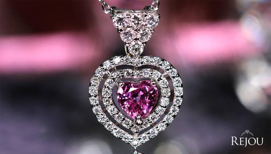 ハートシェイプのピンクサファイアを主役にした、贅沢な逸品。