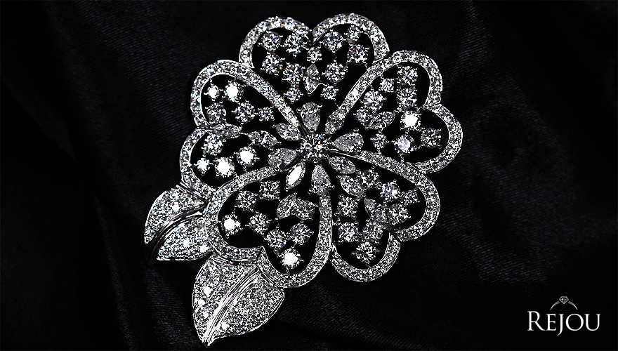 ![]() 豪華約12ctが描き出す光の曲線、胸元を支配する圧倒的な煌めき。 大粒ダイヤと流麗なラインが織りなす、芸術的な造形美。 永遠という名の至高の輝きが咲き誇る資産「ジュエルコサージュ」 ●ダイヤモンドについて ブローチ全体に散りばめられた合計約12ctものダイヤモンドは 一石一石が主役を張れるほどの大粒かつ所見VVS(F)クラスの高品質なものばかりです。 これほどまでのカラット数を、一貫した透明感と輝きの質で揃えることは 貴重で奇跡的なジュエリーでございます。 光を透過させるオープンワークのセッティングにより石の深部まで光も届き 一石一石が持つ純粋な美しさが最大限に引き出されています。 その眩いばかりの光の連鎖も素晴らしく 濁りのない高品質な石からは、溢れ出すようなブリリアンシーが放たれ、 正確なカットが生み出す虹色のファイアが鮮やかに視界を彩ります。 瞬く輝きのシンチレーションも静止画では伝えきれない躍動感を生みます。 流線型のラインに沿って隙間なくパヴェセッティングされたダイヤも、 大粒の石と見事に調和する輝きの質を追求しており 一切の妥協を排して高品質ダイヤモンドだけを厳選していることが このブローチが放つ気高く、力強いオーラの源泉となっています。 身につける人の動きに合わせて光が細かく弾けるような まさに資産価値をも超えた至宝です。 ●デザインについて まさに、胸元に咲き誇るダイヤモンドの「ジュエルコサージュ」として 生命感あふれる流麗なラインが特徴的なモダン・クラシックな意匠です。 透かしの技術でも約12ctという重厚感を仰々しさなく上品な気品に溢れています。 平面に留まらない立体的なフォルムは、どの角度から見ても美しく、 ダイヤモンドの光を多方向へと拡散させる計算し尽くされたお仕立てです。 シャープな直線と柔らかな曲線が交差する独創的なシルエットが 個性を引き立て、胸元に圧倒的な華やぎを演出しジュエリーに深い奥行きを与え 圧倒的なスケール感と精緻な造形美を表現した素晴らしいお仕立てです。 ●REJOUのオススメポイント ダイヤモンド約12ctというミュージアムクラスのボリュームを誇り まさに「ジュエルコサージュ(ブローチ)」として REJOUのコレクションの中でも際立った輝きを放ちます。 これほど贅沢な素材を、単なる派手さではなく、洗練された芸術品へと 昇華させたデザインとお仕立ては、まさに審美眼を持つ方のためのもの。 高品質なVSクラスダイヤが放つ光の嵐は、特別な式典や社交の場はもちろん あなたの存在を誰よりも気高く、美しく印象づけてくれるでしょう。 一点限りの出逢いとなる、この究極のラグジュアリーをその手に収め、 ダイヤモンドが紡ぐ光の物語を、ぜひ心ゆくまでご堪能くださいませ。 一生涯、そして次世代へと受け継ぐにふさわしい価値ある名品です。 ●アイテムスペック 材質…K18ホワイトゴールド 重さ…約19.3g 寸法・厚み(モチーフのみ)…約61.0×47.0×7.8mm 針の長さ/太さ…約35o/約0.9o 中石/脇石…マーキース ダイヤモンド トータル 1.43ct 中石/脇石…ペアシェイプダイヤモンド トータル 0.63ct 中石/脇石…ダイヤモンド トータル 9.68ct 商品状態・・・新品 ●宝石ランク 彩 … S A B C D 透明感 … F VVS VS SI I I2 カット… EX VeryGood Good Fair Poor