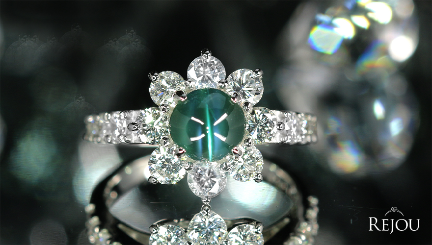 ![]() カラーチェンジしながら美しいキャッツが表面にくっきりと輝きます。 大粒1.8カラットもの希少なアレキサンドライトキャッツアイとの貴重な出会い ダブルの特殊効果を持ち合わせた希少宝石レアジュエリーです。 ●メインストーンについて ブルー・ブルーグリーン・ヴァイオレット・ワインレッドへと妖艶なカラーチェンジ。 さらにシャトヤンシー効果が加わり、一筋のラインが現れます。 カラーチェンジしながら美しいキャッツがぷっくりツヤツヤの表面に くっきりと輝く高品質な1石との出逢いです。 トップランクのカラーと、キャッツアイ効果を際立てる 磨かれたカボションカットが美しい、妖艶なカラーチェンジと猫目効果。 贅沢なレアストーンの特殊効果を、最高品質でご堪能いただけます。 見る者を幻想的な世界へと誘う、まさに「宝石の王」の名に相応しい1石です。 ●サイドストーン(ダイヤモンド)について 合計約1.5ctという圧巻のボリュームを誇る大粒の厳選ダイヤモンドたち。 すべて所見VSクラスの石のみを使用しており、全方位に放たれるブリリアンシーは、 メインの変色効果をよりドラマチックに、より鮮烈に際立たせます。 さらに連鎖的に放つシンチレーションと、虹色のファイアの共演は 高品質なダイヤモンドだけを贅沢に集めた証。 アレキキャッツアイの特殊効果をサイドからしっかりと際立てています。 ●デザインについて 希少な高品質アレキサンドライトキャッツアイを 大粒のダイヤモンドで花びらを描いたようなクラス感溢れるフラワーデザインで。 重厚なプラチナを惜しみなく使用し、サイドのアーム部分にも極上ダイヤモンドを敷き詰めることで どの角度から眺めても隙のないハイジュエリーとしての風格を完成させました。 取り込んだ光をメインストーンの深みへと透過させる構造で 主石のカラーチェンジとキャッツアイ効果をどこまでもリスペクトする希少宝石レアジュエリーの誕生です。 ●REJOUオススメポイント 大粒1.8カラットで高品質のアレキサンドライトキャツアイ! 希少石ファンには見逃せない美しいリングの登場です。 カラーチェンジしながら美しいキャッツがぷっくりツヤツヤの表面にくっきりと輝き ダブルの特殊効果を持ち合わせた希少宝石ジュエリーで 贅沢なレアストーンの特殊効果を最高品質でご堪能いただけます。 美しい効果への驚きと喜びや至高の輝きや神秘をぜひこのチャンスにお迎えくださいませ。 ●アイテムスペック 材質…Pt950 重量…約7.1g リングサイズ…11番(±3番以内サイズ変更可) 最大幅…約13.2mm 厚み…約9.5mm 中石…アレキサンドライトキャッツアイ 1.80ct(約6.5×6.5mm) 脇石…ダイヤモンド トータル 1.48ct 商品状態・・・新品 ●宝石ランク 彩 … S A B C D 透明感 … F VVS VS SI I I2 カット… EX VeryGood Good Fair Poor キャッツアイ… S A B C D E 脇石… S A B C D E