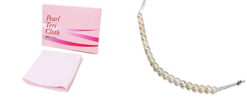 また、化粧やヘアスプレーなどは真珠の美しさを損なう原因になることがあるため、真珠の着用前に使用することを注意してください。なお、真珠を拭く布は専用の物がなくてもメガネ拭きのような柔らかくて清潔なものであればなんでもOKです。上の画像の様に真珠専用のクロスもあるので用意するのも良いですね!